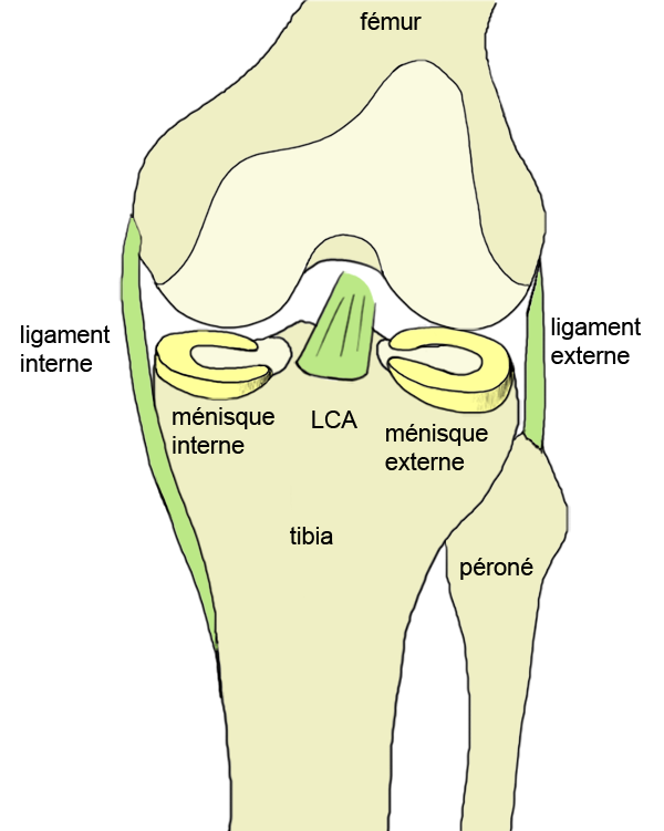 Anatomie du genou, ligament croisé antérieur, ligament interne et externe, ménisque : schéma du genou.